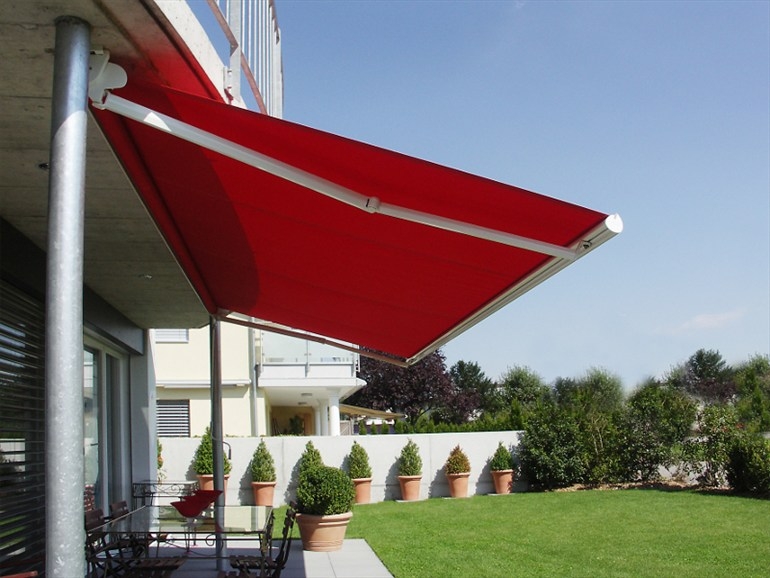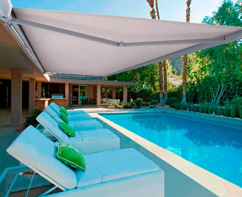 do mercado é a dos toldos à braços retráteis, onde uma articulação nos braços garante o movimento de abertura e fechamento,